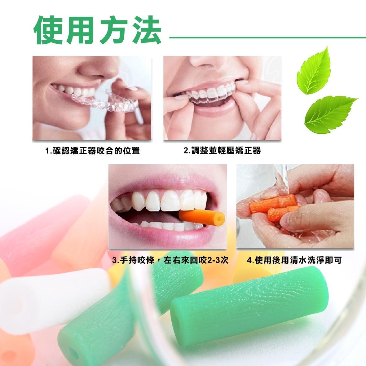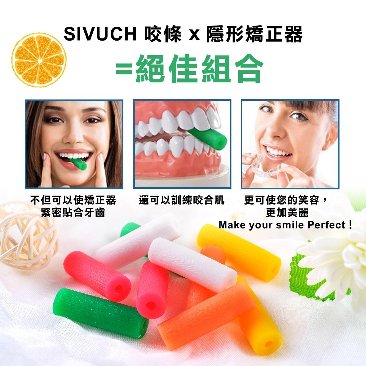 SIVUCH 隱形矯正器Chewies專用咬條,是用來幫助隱形矯正器(如隱適美等等),與牙齒密合用的高品質彈性條 有 薄荷、柑橘、草莓、檸檬、原味 5種口味可供選擇。 一小包有2支咬條,直徑10mm,長度約33mm